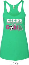 Kicking Breast Cancer is Our Goal Ladies Tri Blend Racerback Tank Top