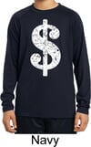Kids Funny Distressed Dollar Sign Dry Wicking Long Sleeve Tee T-Shirt