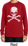 Kids White Distressed Skull Dry Wicking Long Sleeve Shirt