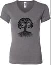 Ladies Black Celtic Tree Ladies V-neck Shirt, Deep Heather Grey, MD