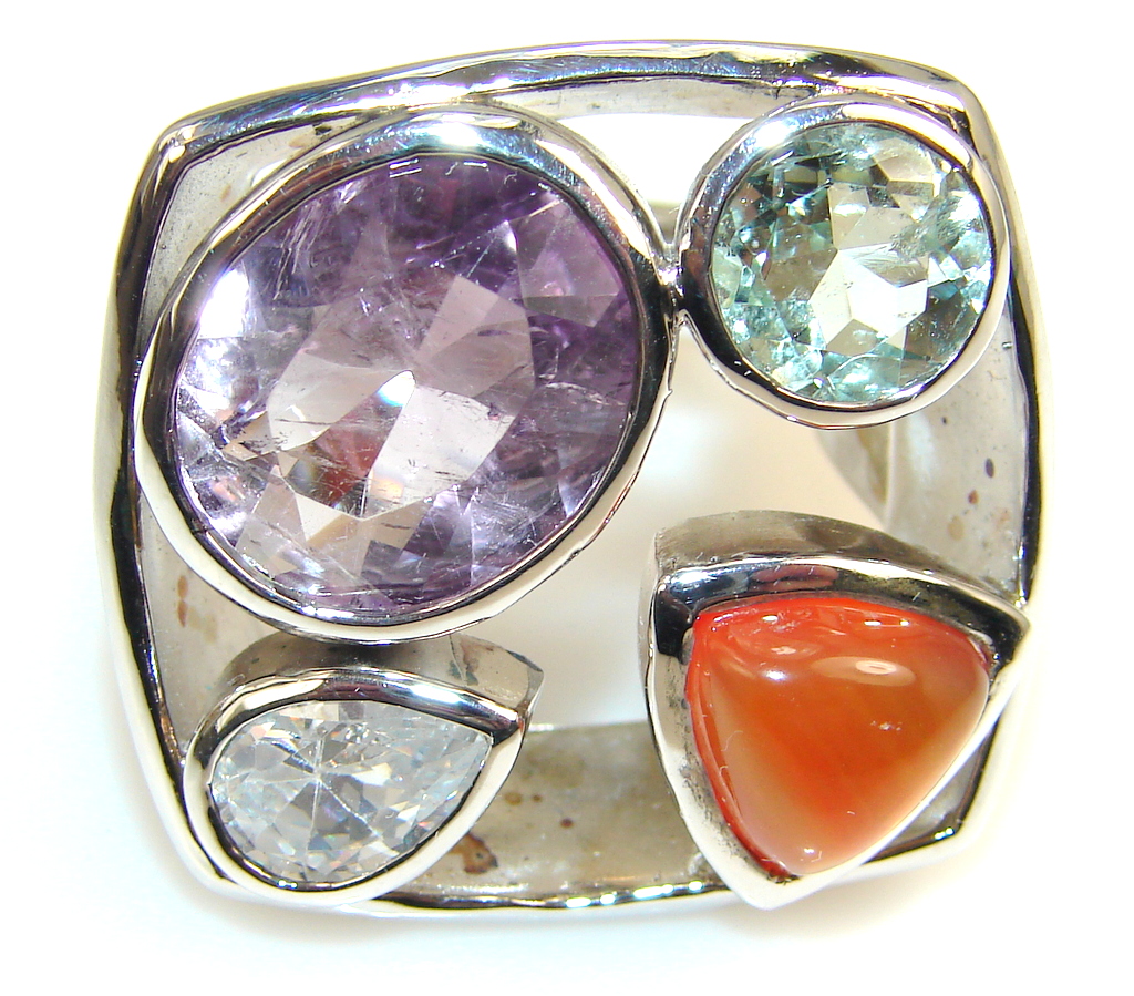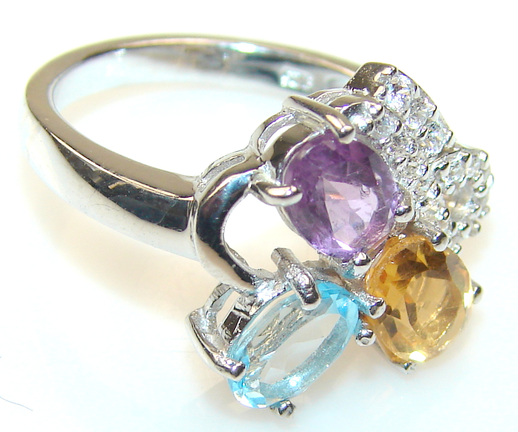 Mgnificent Amazing Multigem Sterling Silver Ring s. 8