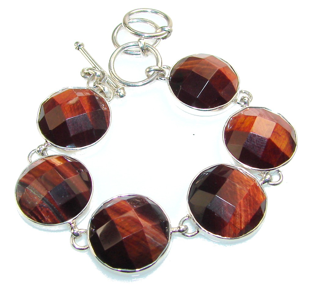 Fabulous Color Of Red Tigers Eye Sterling Silver Bracelet