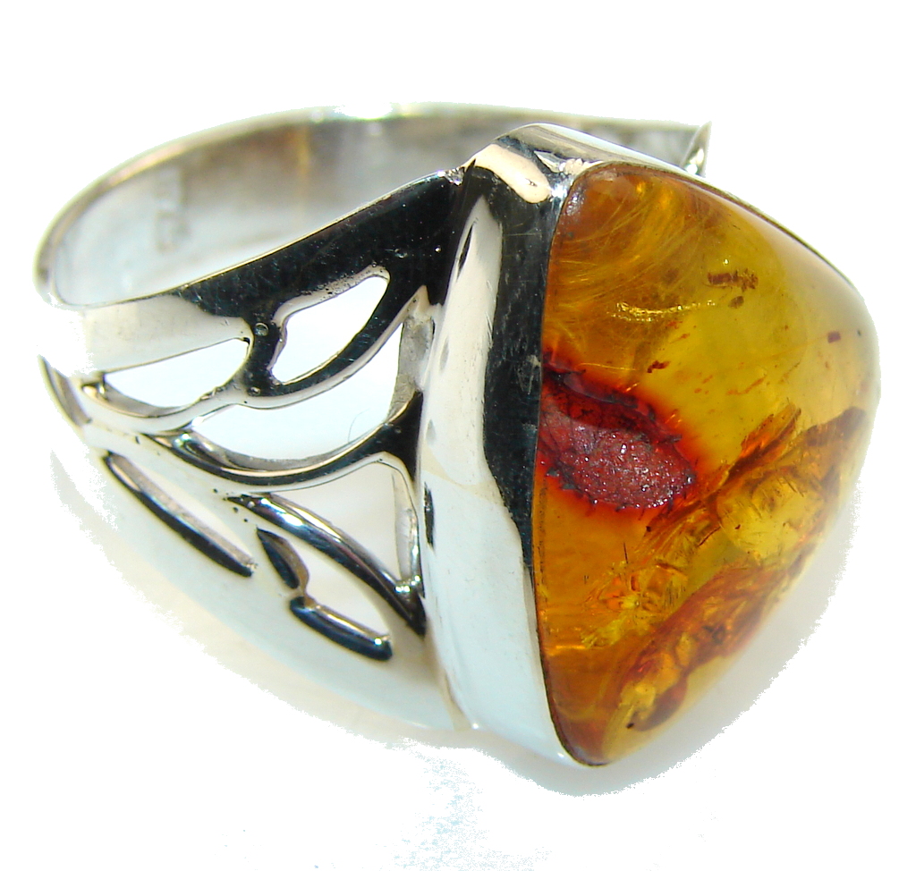 Gorgeous Polish Amber Sterling Silver Ring s. 11 1/2