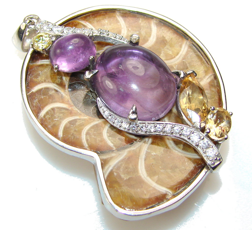 Fabulous Design!! Ammonite Fossil Sterling Silver Pendant