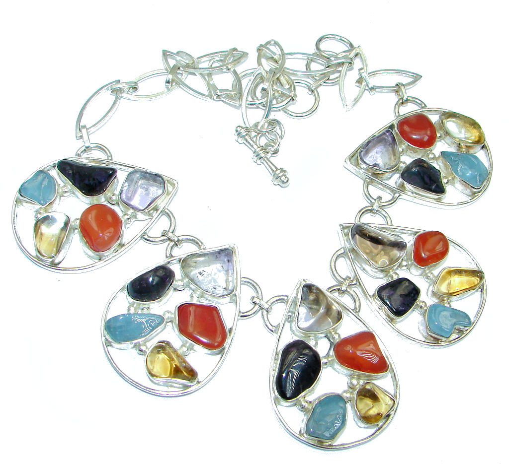 Large Aura Of Beaut Unpolished Multistone Sterling Silver handmade necklace