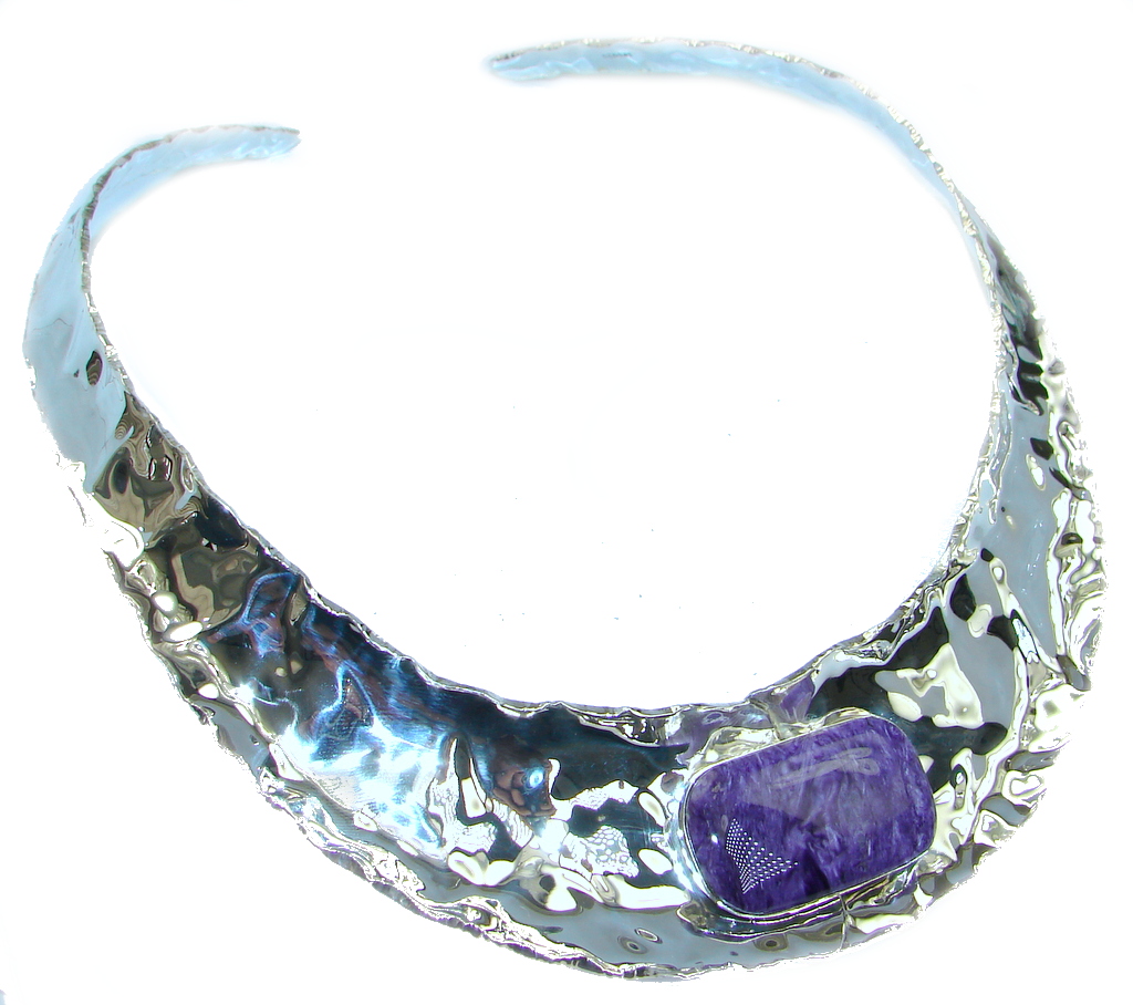 One of the kind Design AAA + Charoite Sterling Silver hammered necklace