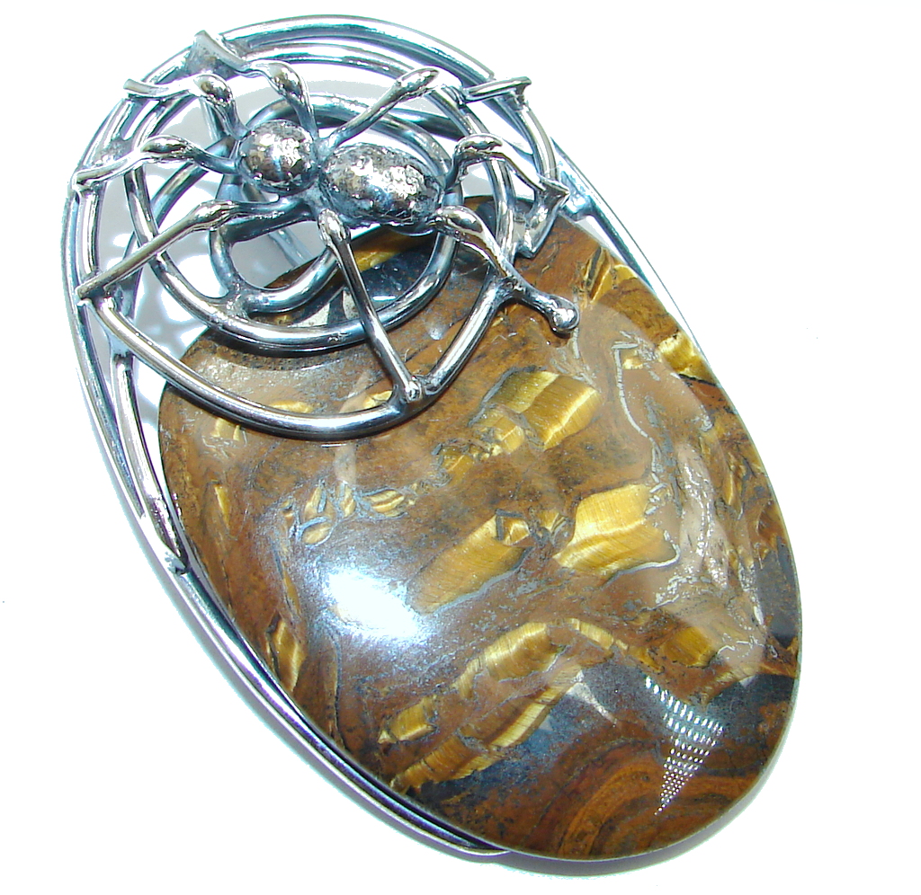 Spiders's Web Golden Tigers Eye Sterling Silver handmade Pendant