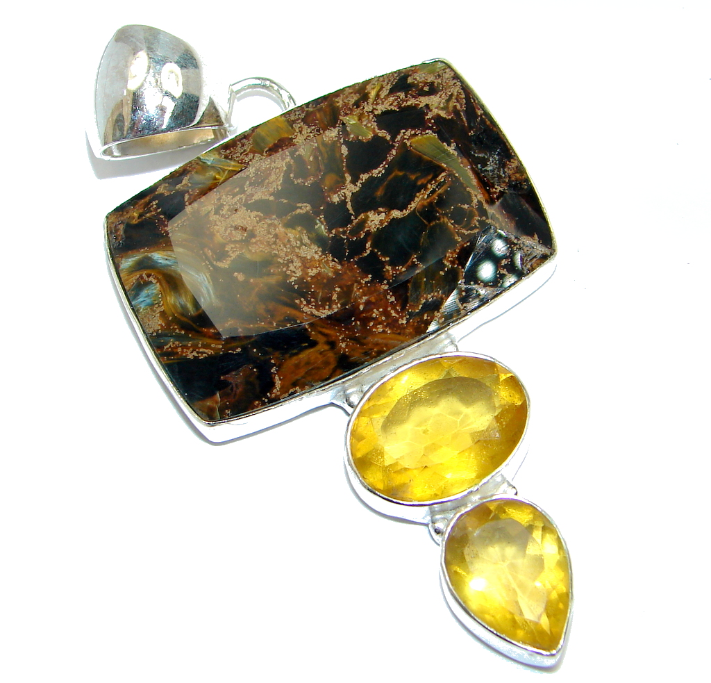 Genuine Golden Pietersite Sterling Silver handmade pendant