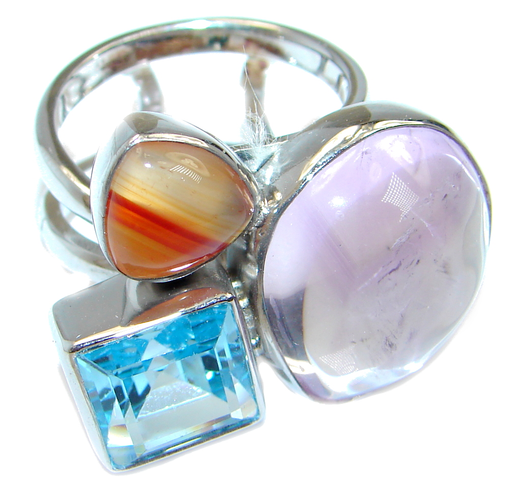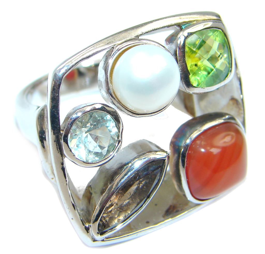 Palette of colors Multigem Sterling Silver Ring size 7 1/2