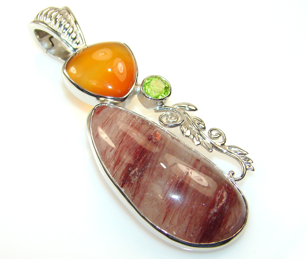 Gentle Red Rutilated Quartz Sterling Silver Pendant