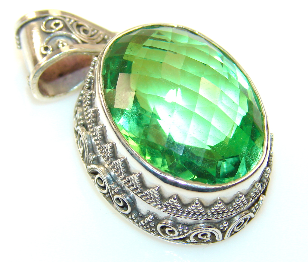 Secret Design!! Green Quartz Sterling Silver Pendant
