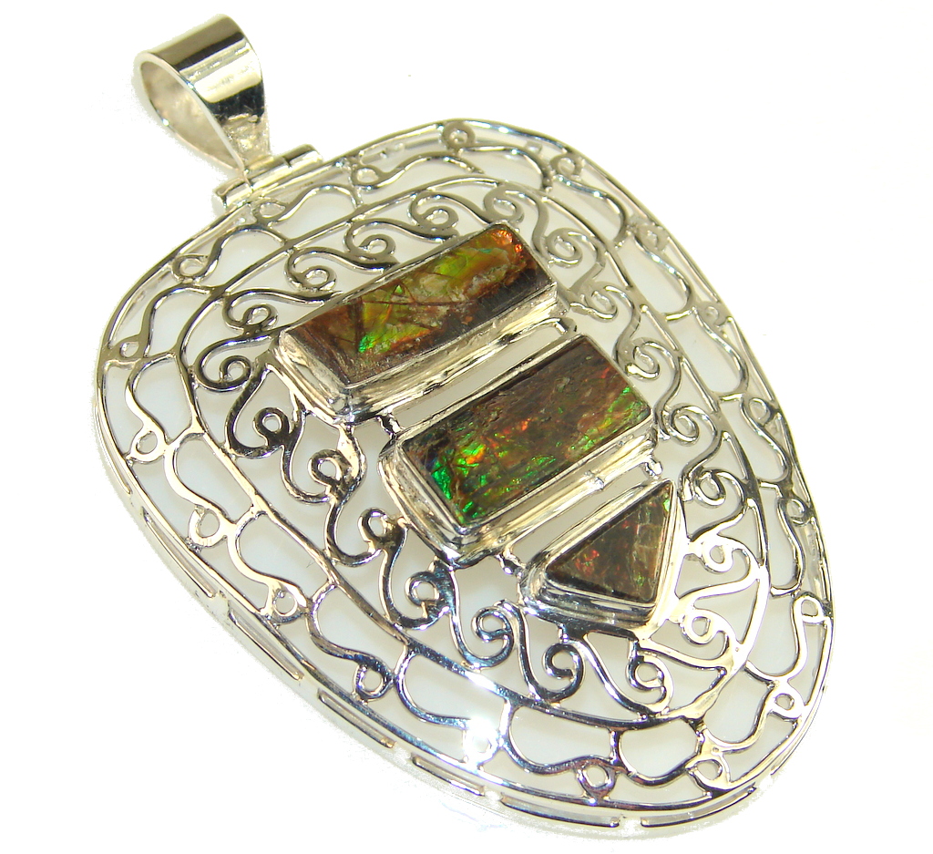 Fabulous Ammolite Fossil Sterling Silver Pendant
