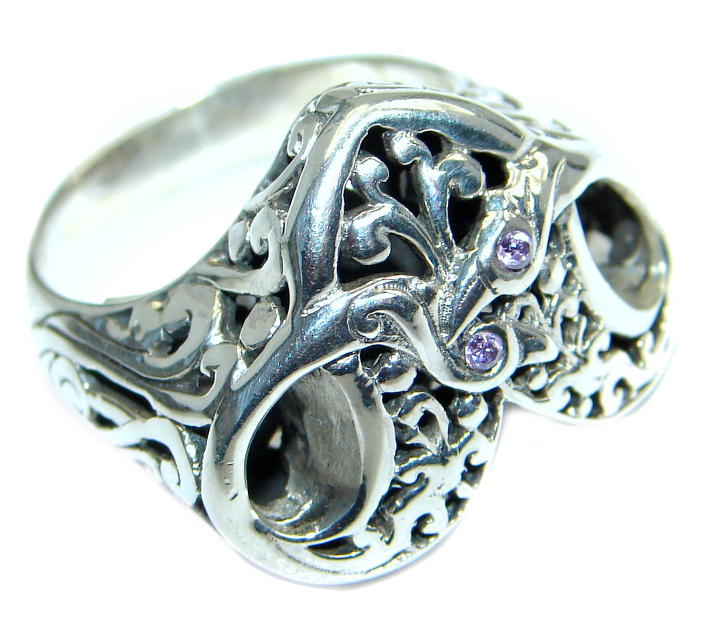 Bold Design Genuine Amethyst Sterling Silver handmade ring size 8 3/4