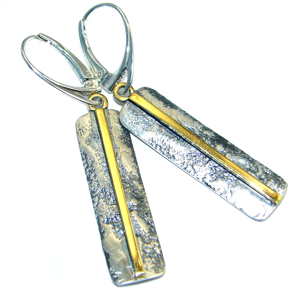 Long Back to Nature Oxidized Sterling Silver Italy made Earrings