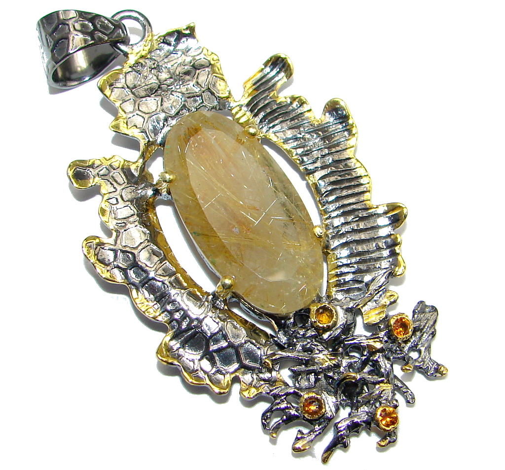 Incredible 78.95 ct Citrine Rose Gold plated over Sterling Silver handmade Pendant