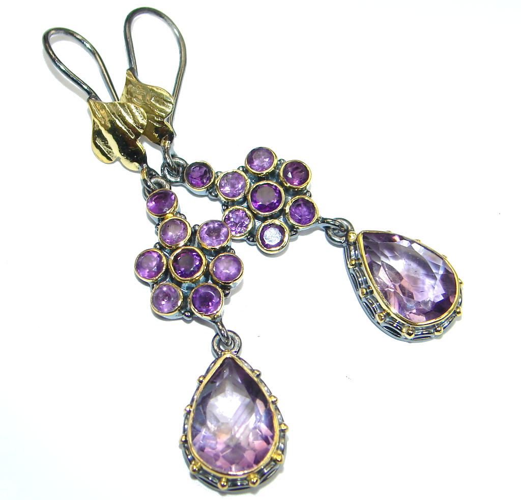 Unique NATURAL Amethyst Gold plated over Sterling Silver earrings