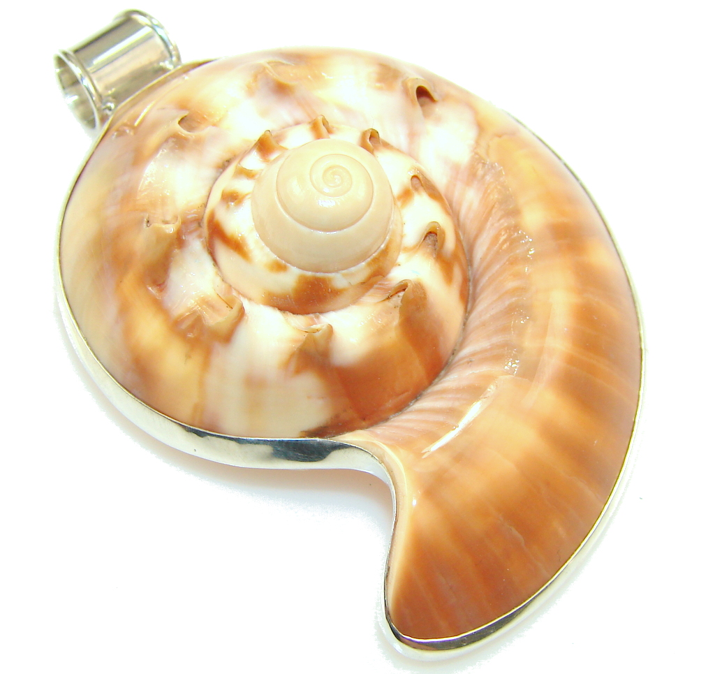 Huge Nautilus Ocean Brown Shell Sterling Silver Pendant