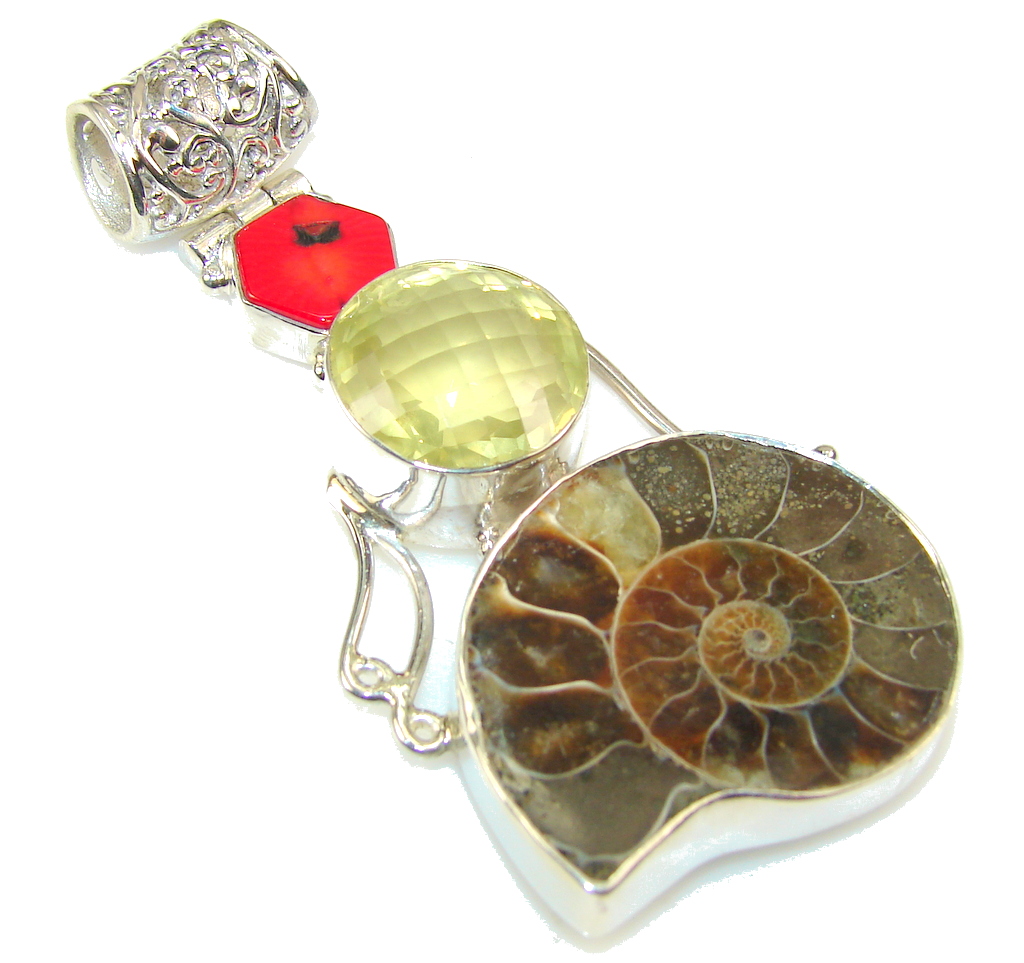 Excellent Ammonite Fossil Sterling Silver Pendant
