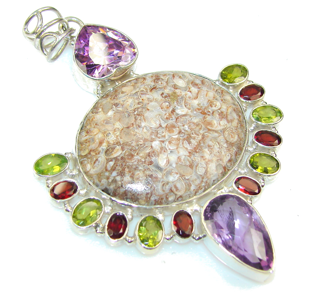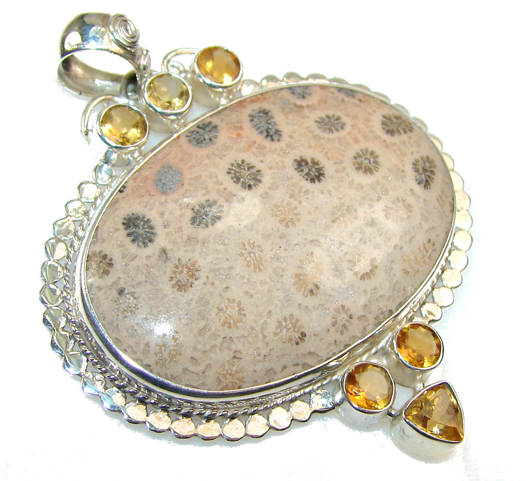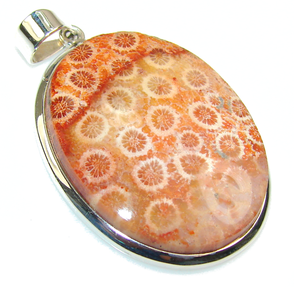Excellent Genuine Fossilized Coral Sterling Silver pendant