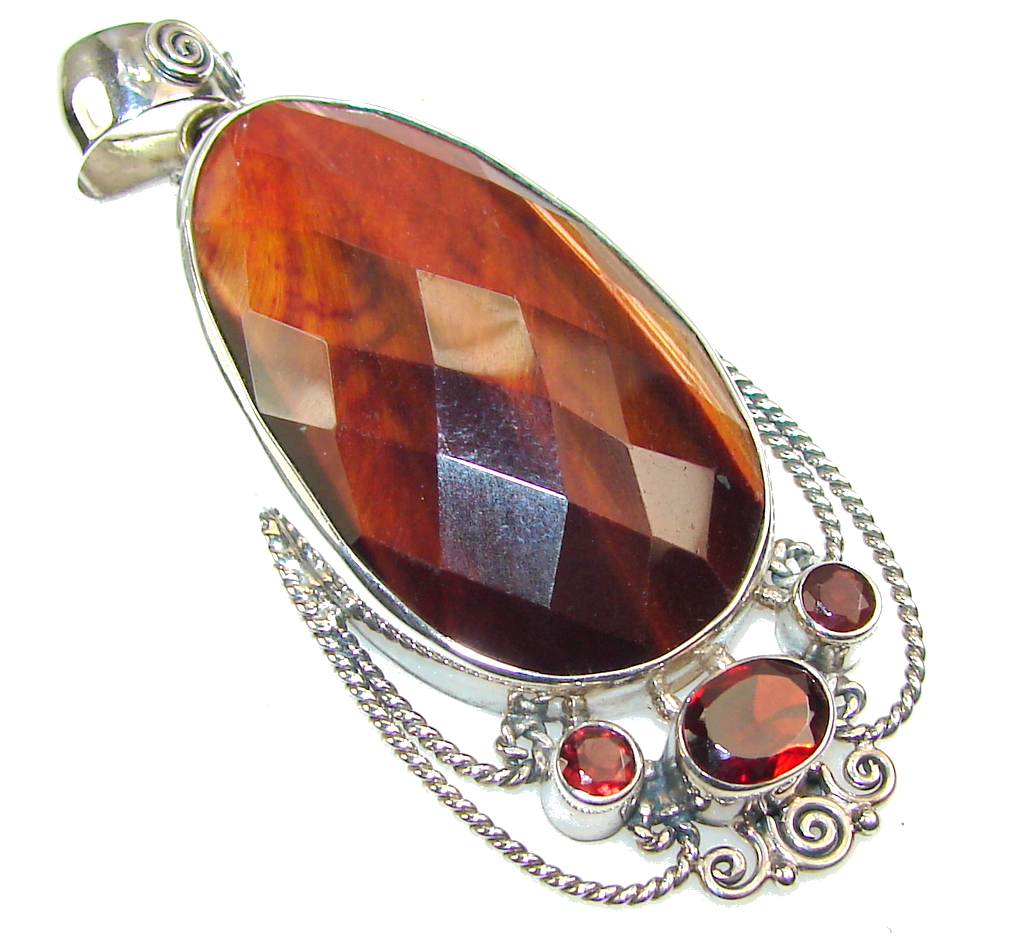 Gorgeous Red Tigers Eye Sterling Silver Pendant