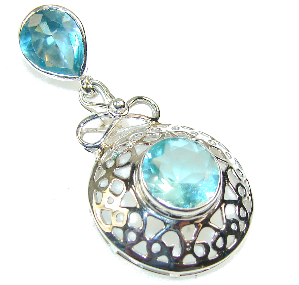 Light Created Swiss Blue Topaz Sterling Silver Pendant