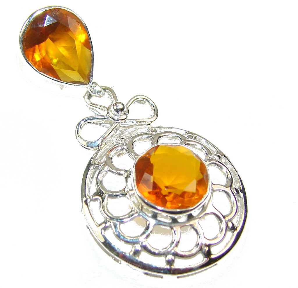 Precious Created Honey Topaz Quartz Sterling Silver Pendant