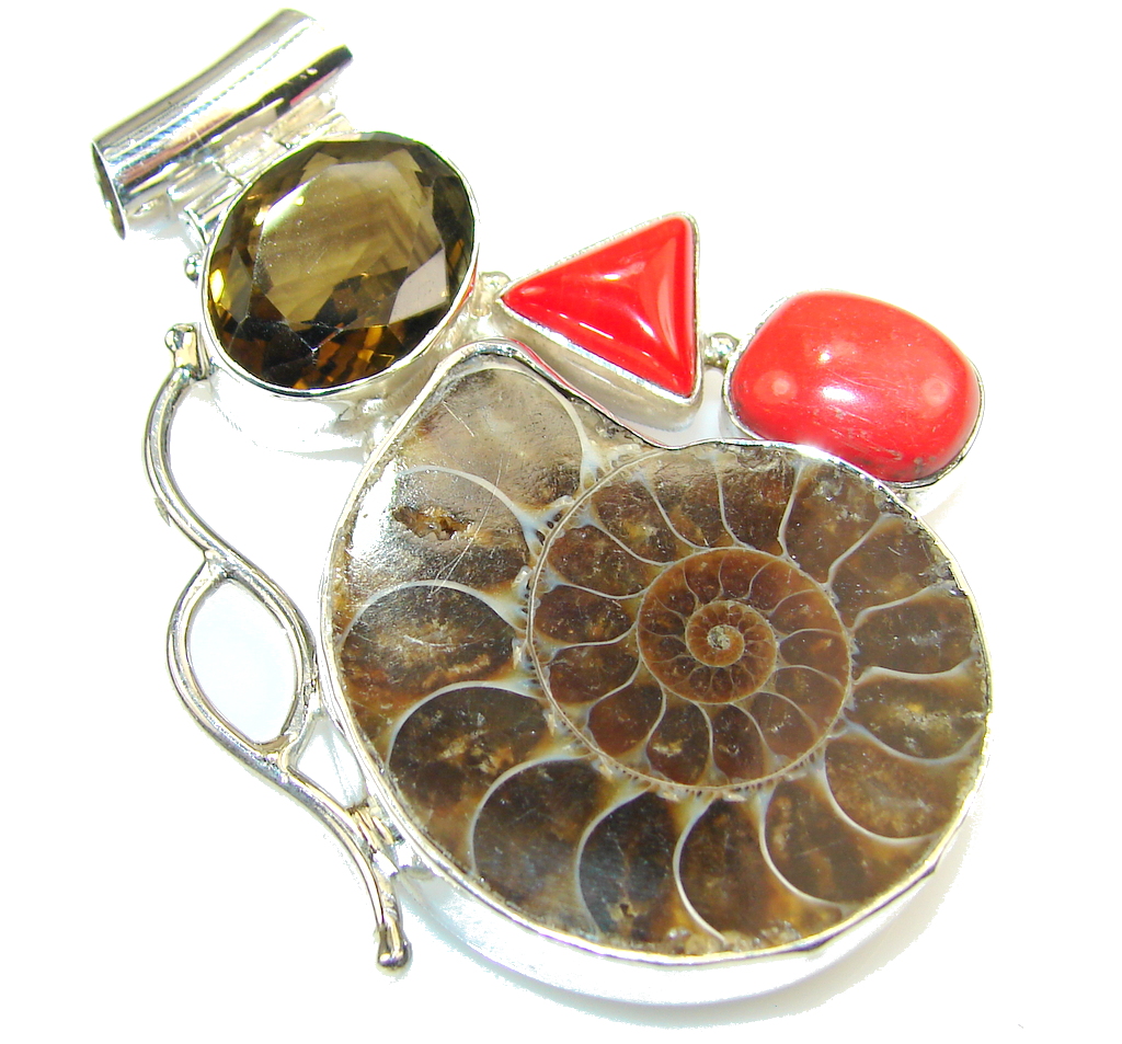 Big! Stylish Design!! Ammonite Fossil Sterling Silver Pendant