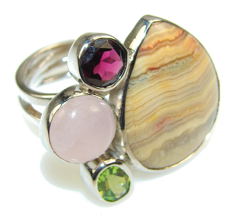 Very Unusual Crazy Lace Agate Sterling Silver ring s. 7 - Adjustable