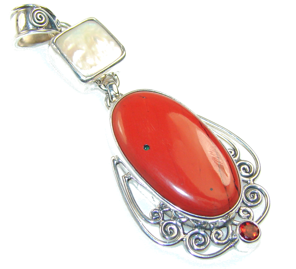 Classy Red Jasper Sterling Silver Pendant
