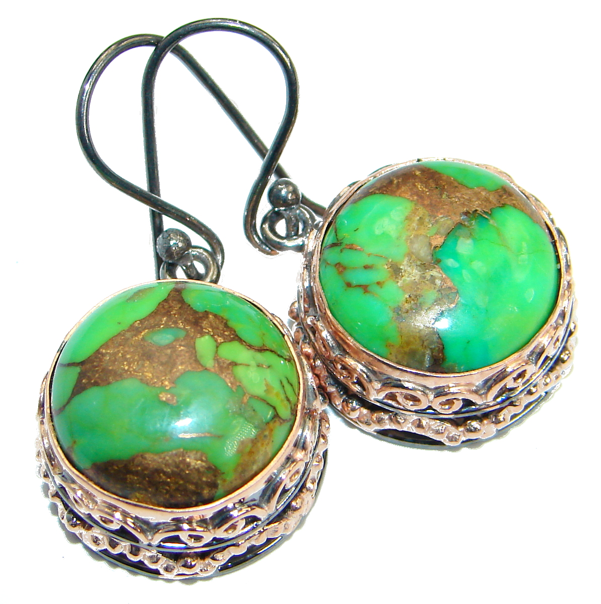 Fancy Green Turquiose Rose Gold over .925 Sterling Silver handmade earrings