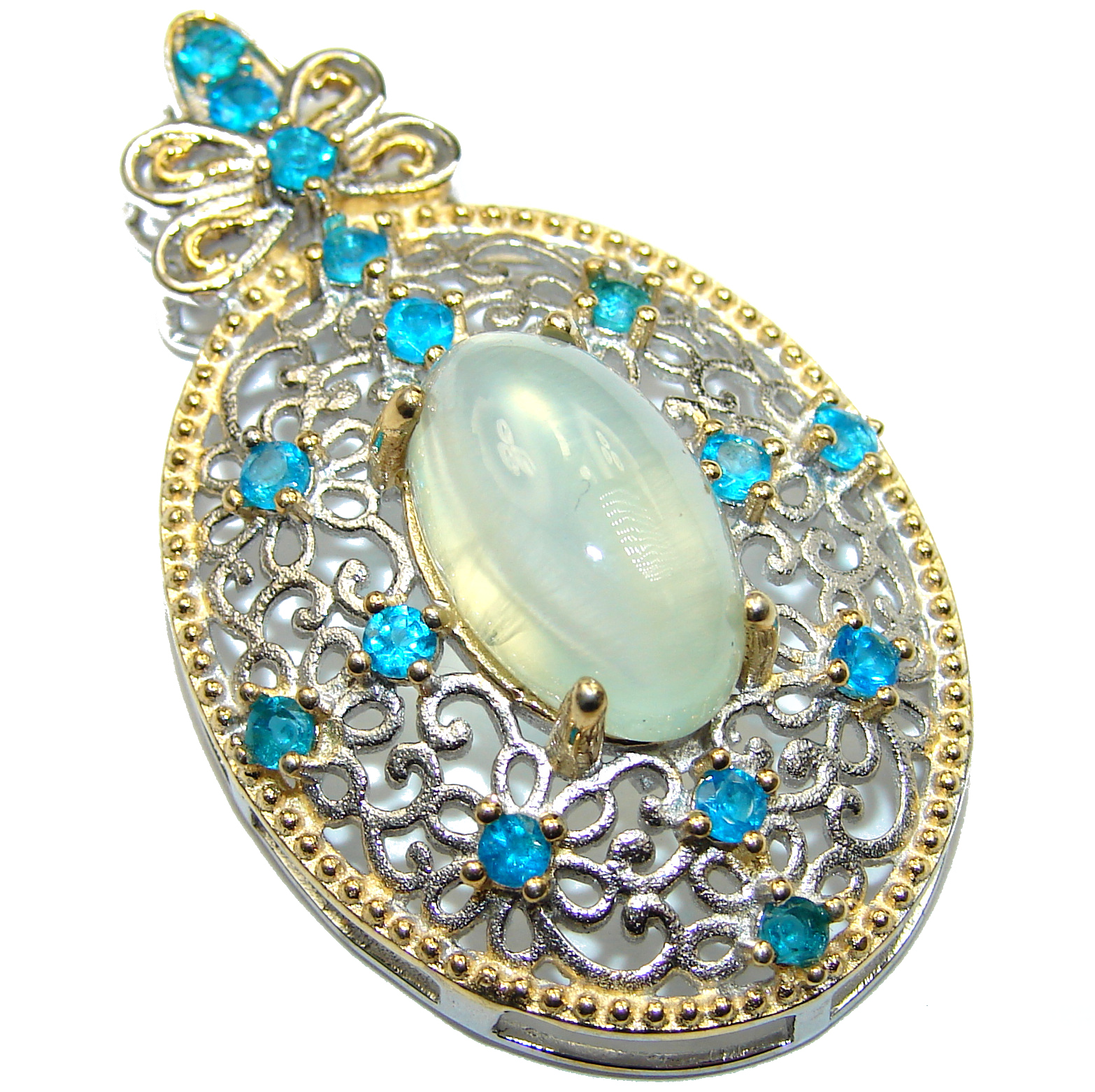 Royal Natural Moss Prehnite Paraiba Tourmaline .925 Sterling Silver handmade Pendant