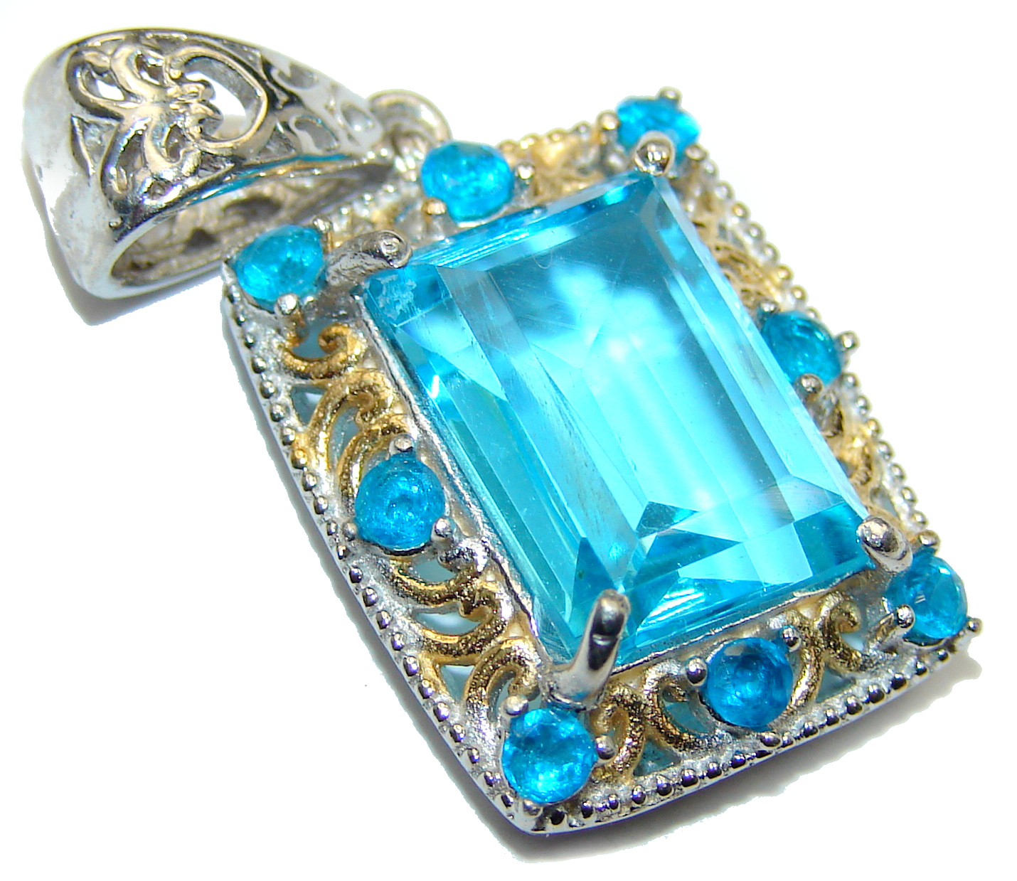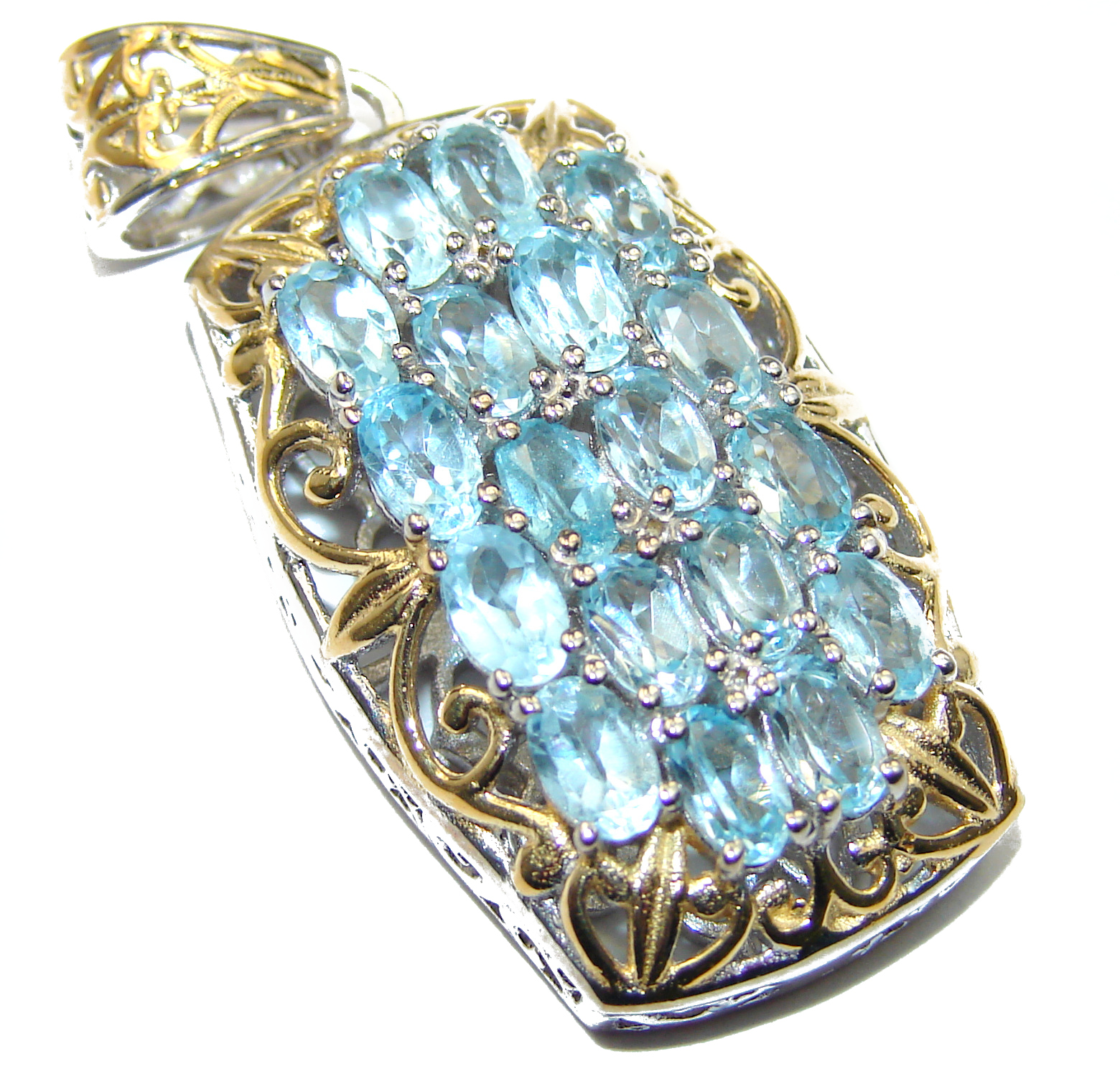 Beautiful genuine Swiss Blue Topaz 14K Gold over .925 Sterling Silver handcrafted Pendant