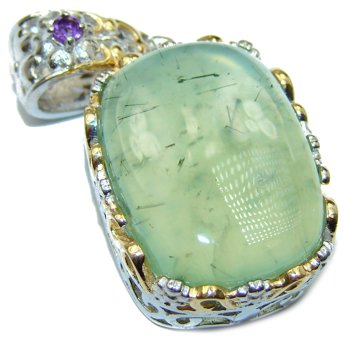 Pure Perfection Natural Moss Prehnite .925 Sterling Silver handmade Pendant