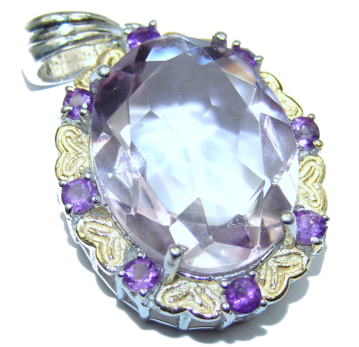 Royal Treaure Genuine 29ct Pink Amethyst 14K Gold .925 Sterling Silver handmade Pendant