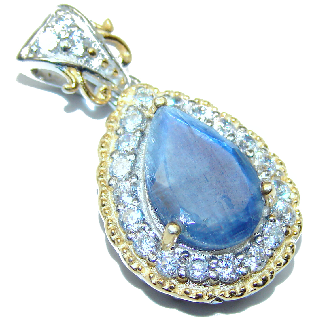 Natural Swiss Blue Topaz 14K Gold over .925 Sterling Silver handmade Pendant