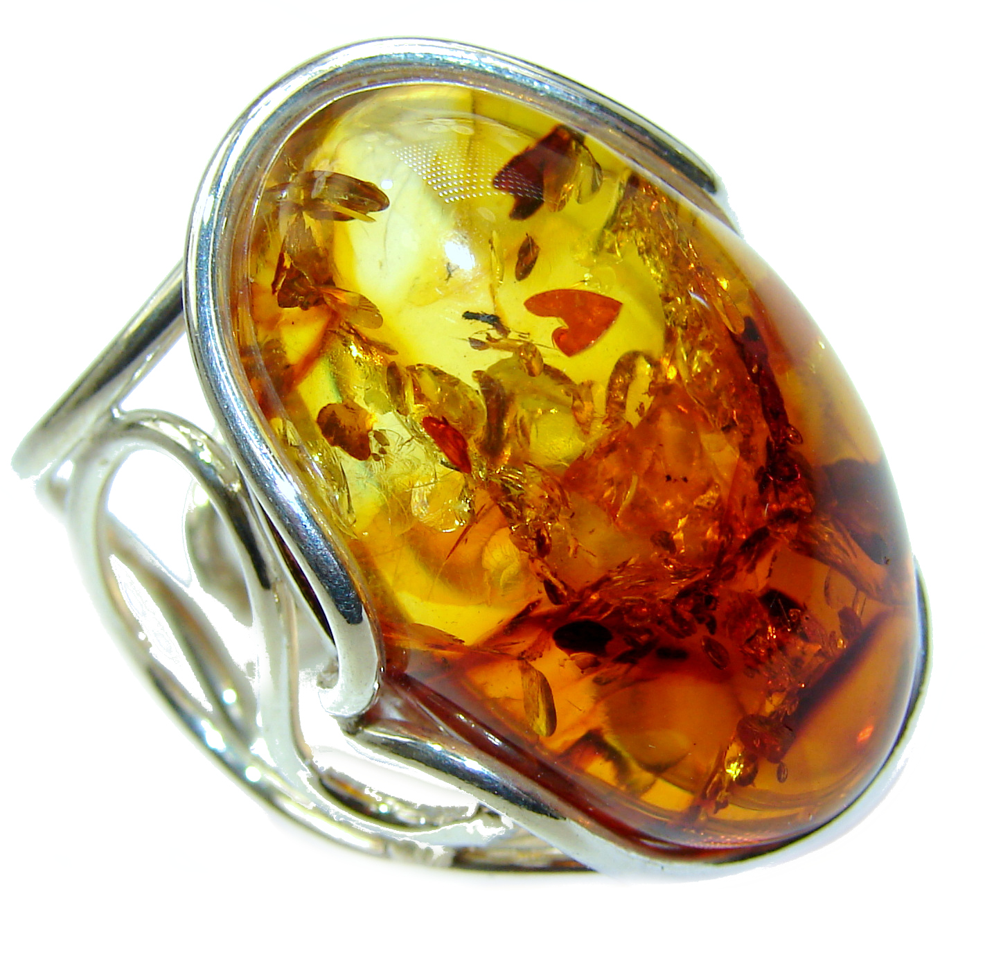 Authentic Baltic Amber .925 Sterling Silver handcrafted ring; s 8 adjustable