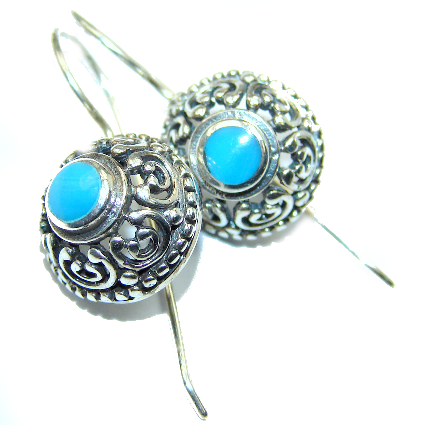 Solid Blue Turquoise .925 Sterling Silver earrings