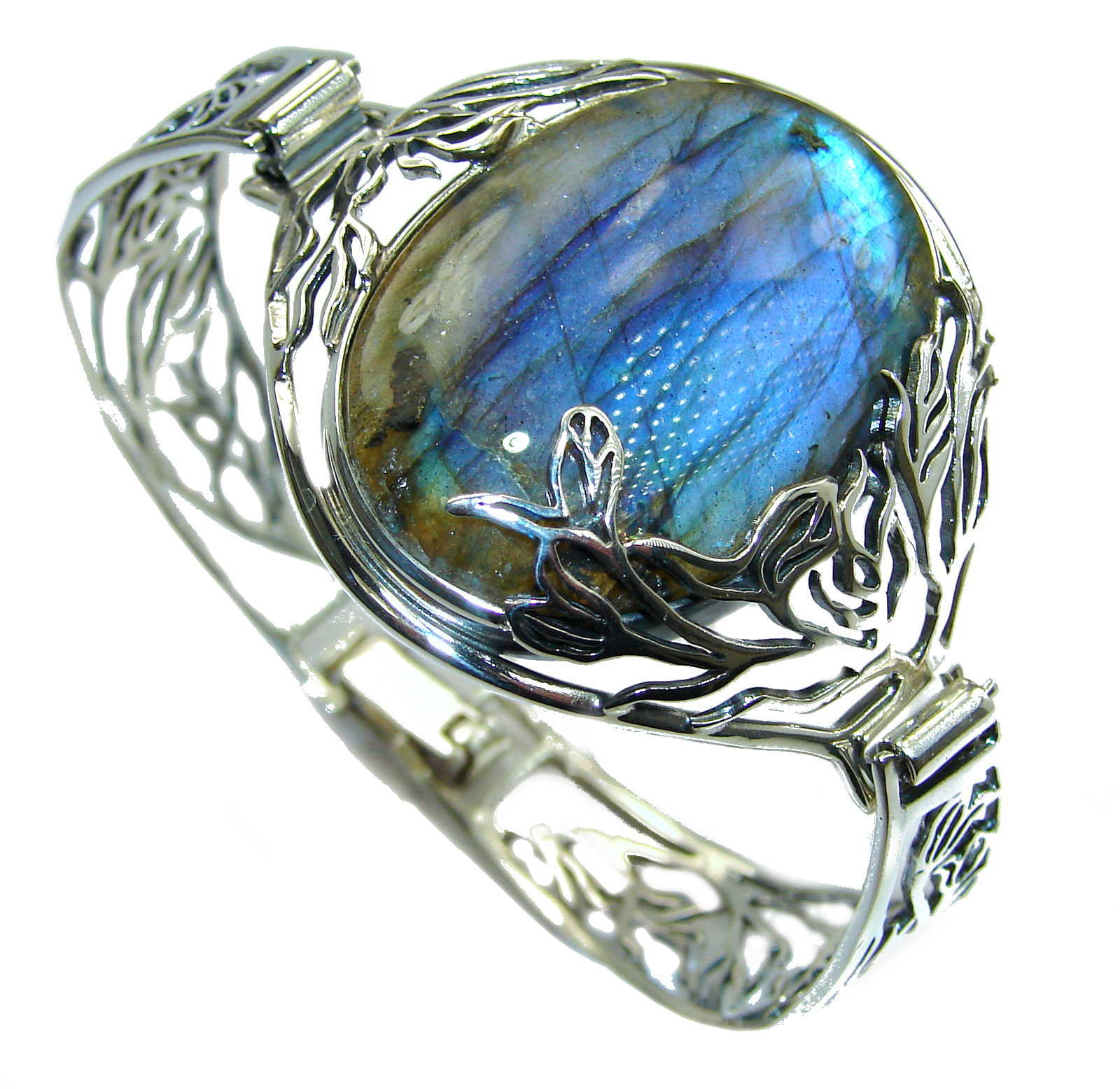 Shimmering authentic Labradorite .925 Sterling Silver handmade Bracelet / Cuff