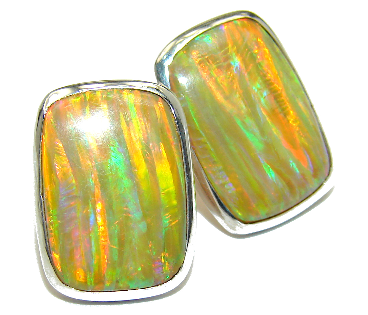 Luxury Japanese Fire Opal .925 Sterling Silver handmade earrings