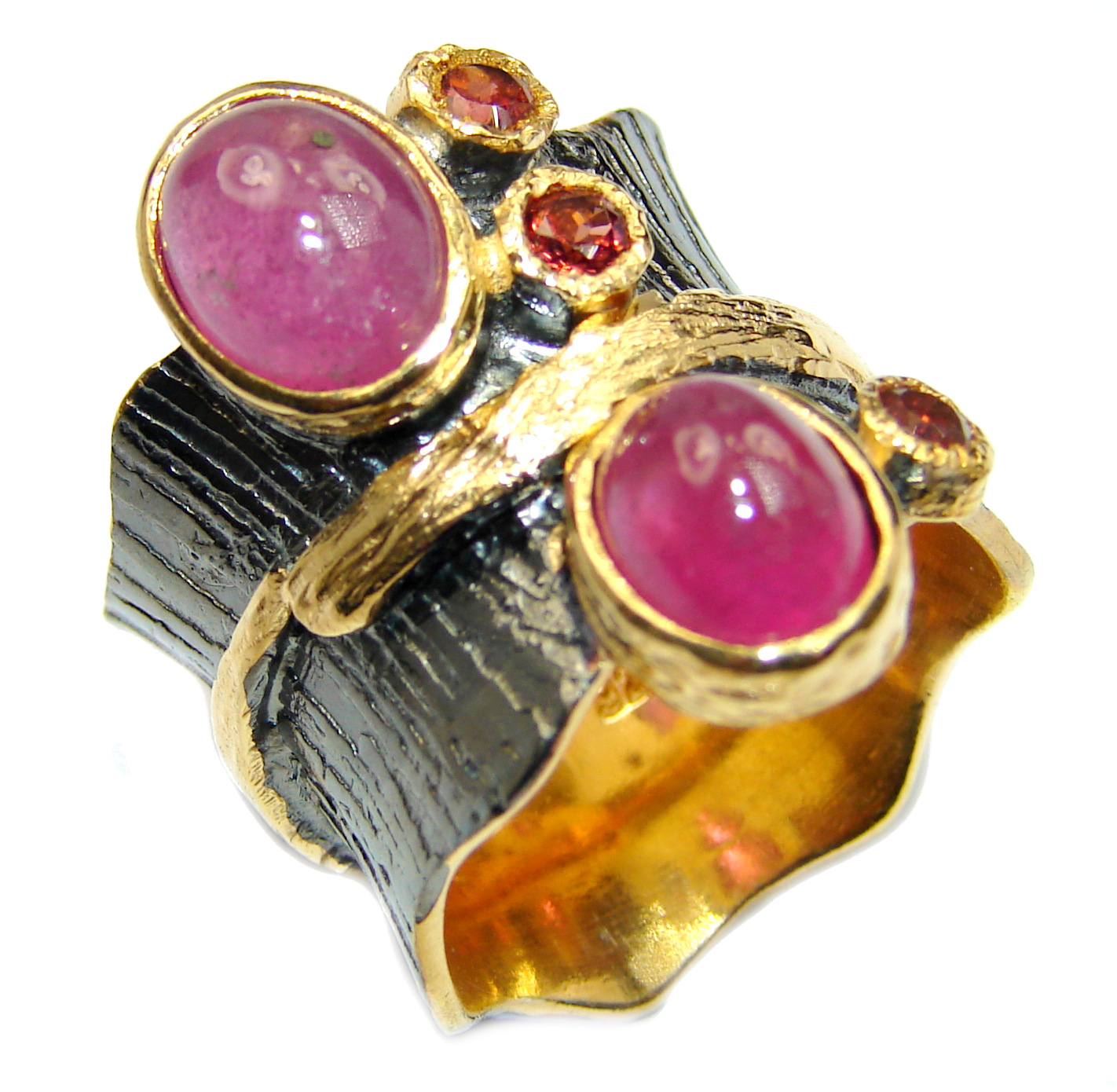 Genuine Garnet 14ct Gold over .925 Sterling Silver handmade Cocktail Ring s. 7 adjustable