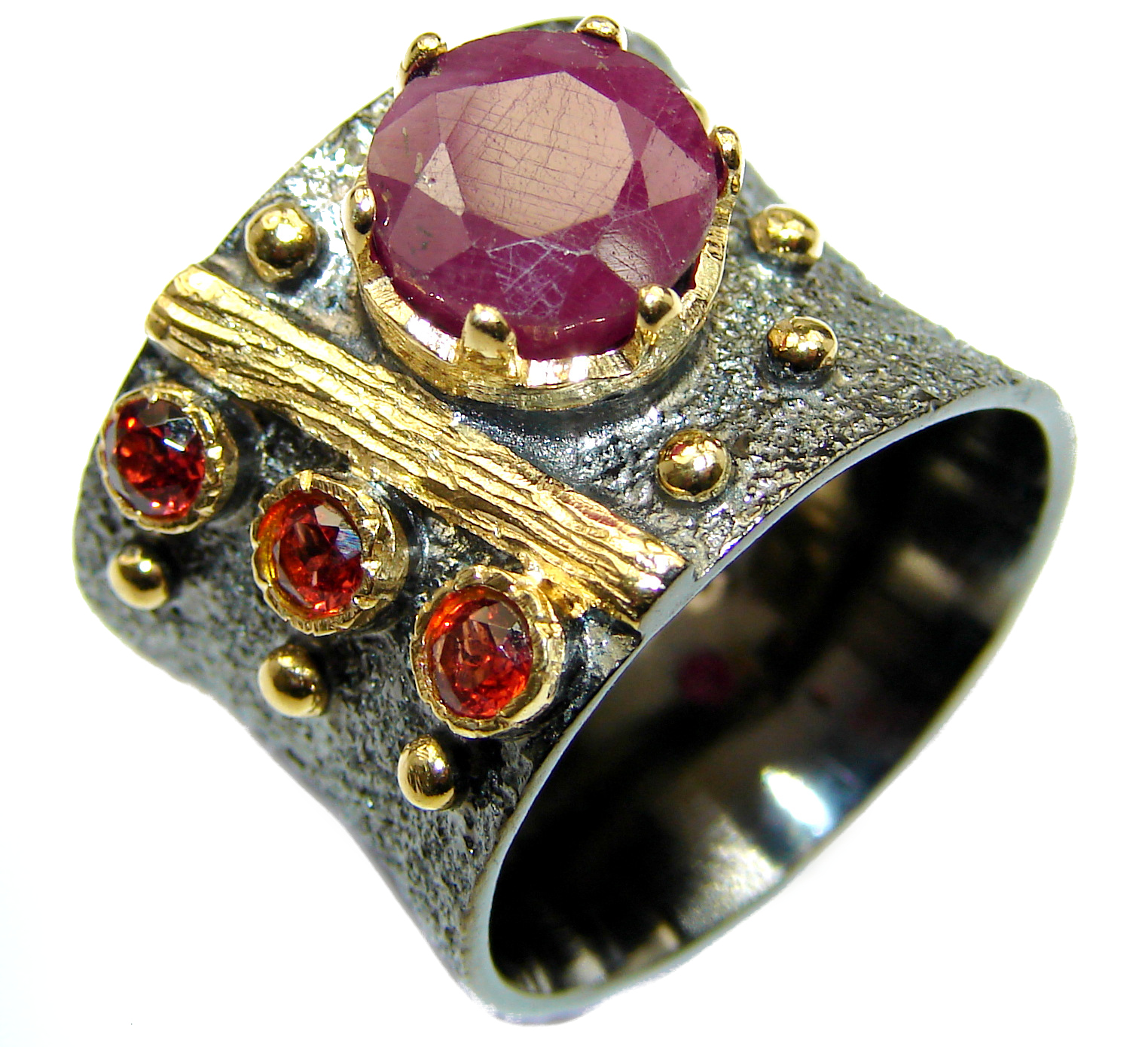 Large genuine Ruby 14K Gold over .925 Sterling Silver Statement ring; s. 6 1/2