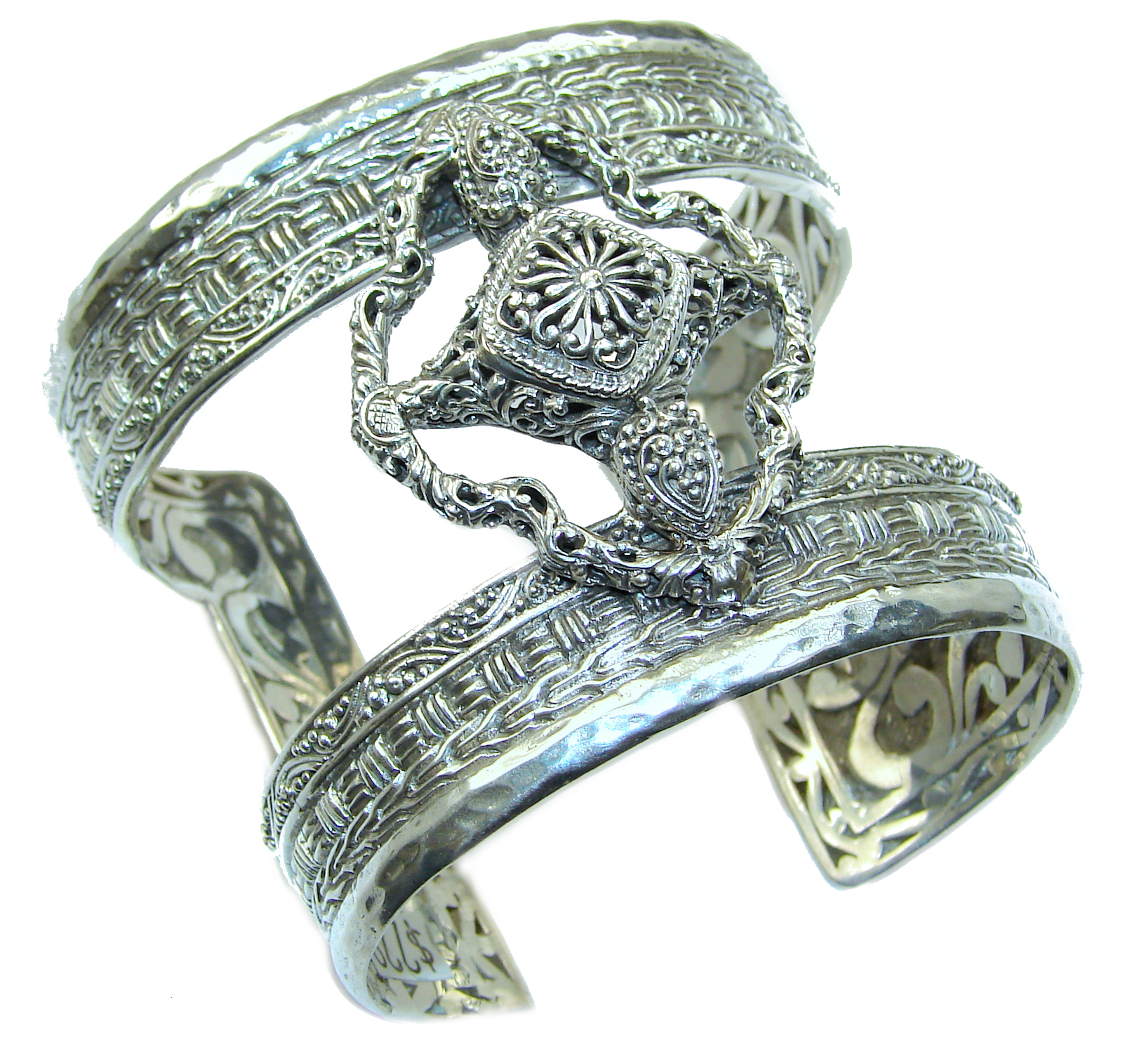 Huge 82.9 grams Celtic Cross Design .925 Sterling Silver handcrafted Bracelet / Cuff