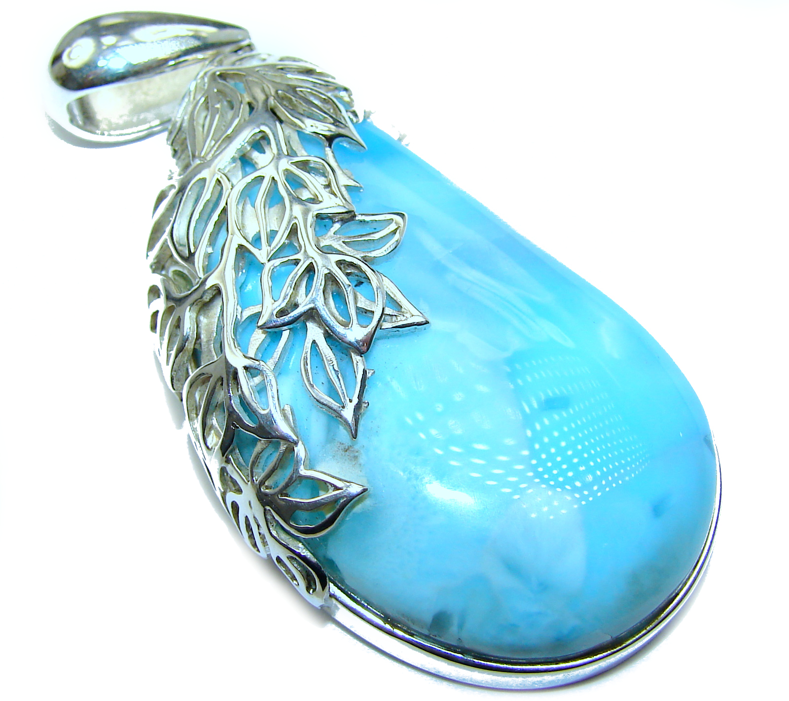 Treasure of Caribbean Sea 98ct Larimar .925 Sterling Silver handmade pendant