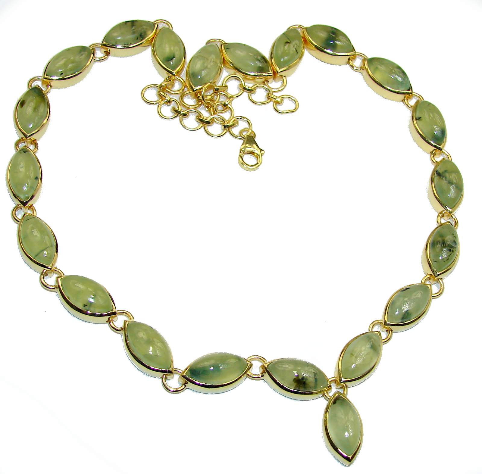 Great Masterpiece genuine Moss Prehnite 14K Gold over .925 Sterling Silver handmade necklace