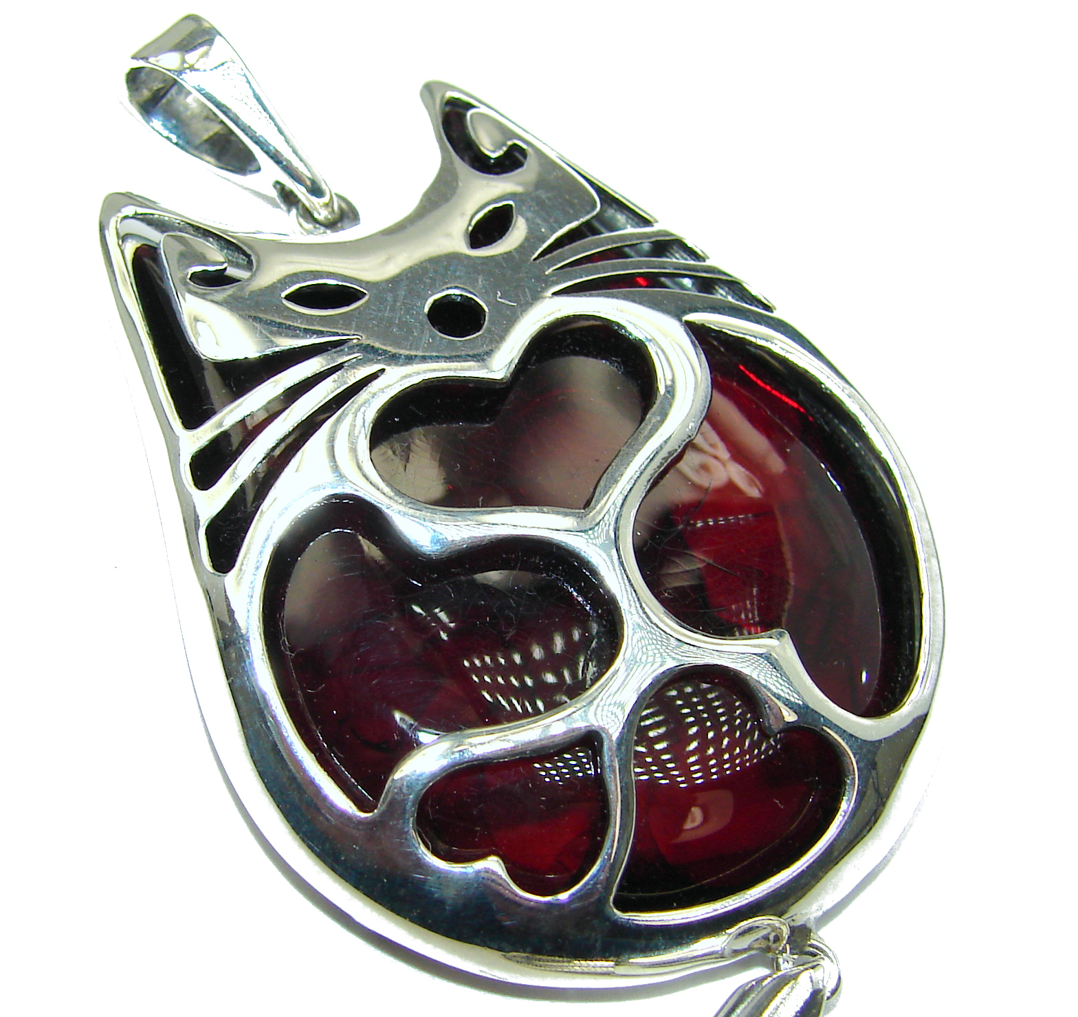 Big CAT Natural Baltic Amber .925 Sterling Silver handmade Pendant