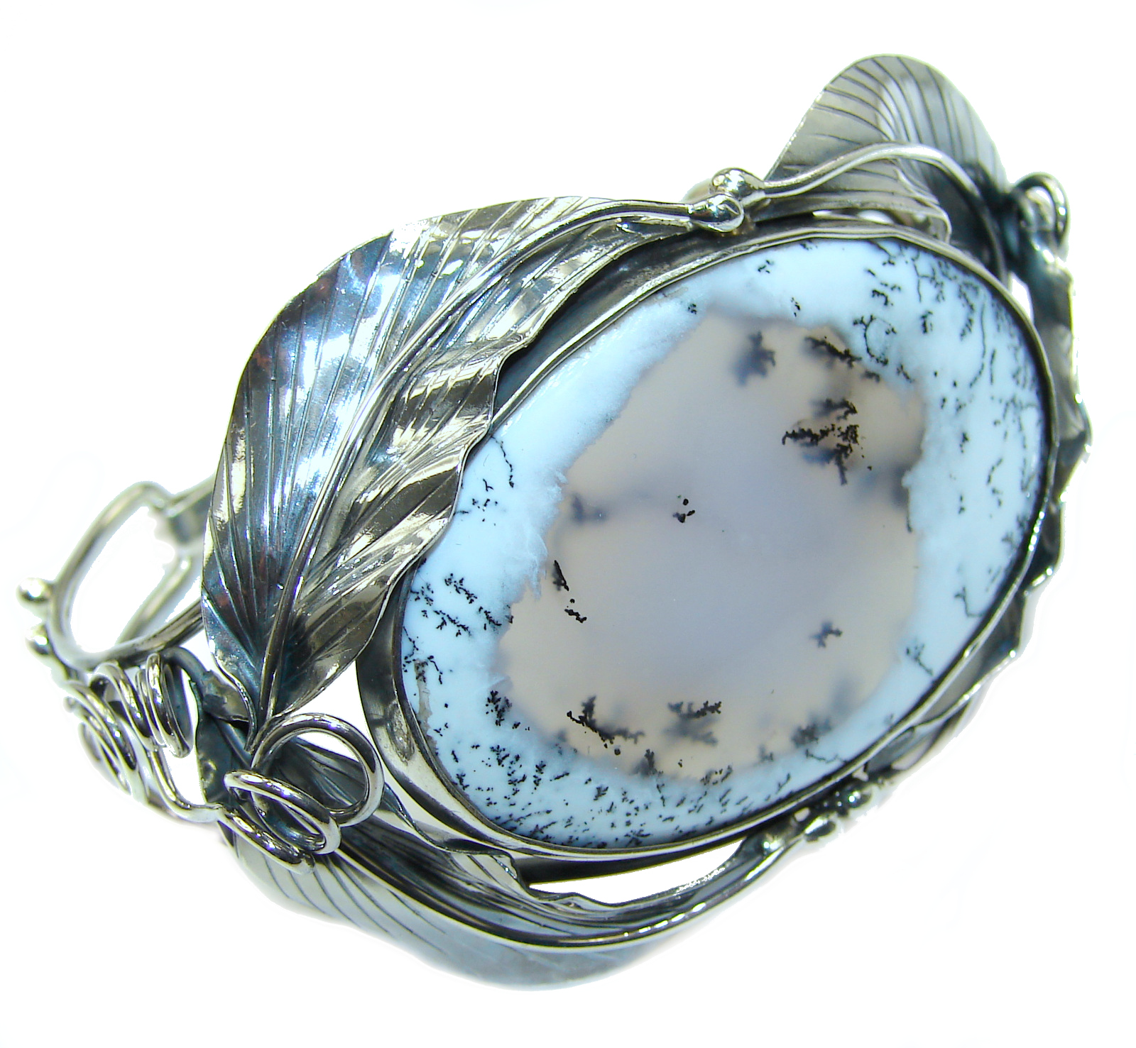 Huge Floral Design Dendritic Agate oxidized .925 Sterling Silver handcrafted Bracelet