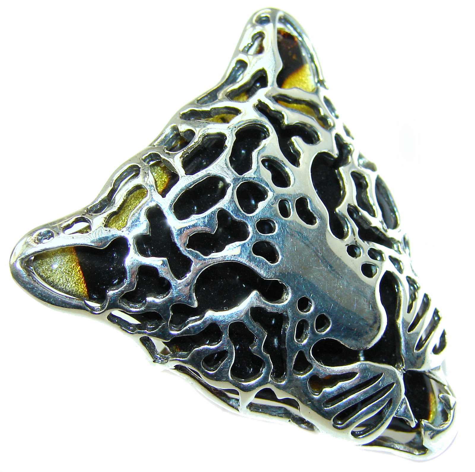 Cheetah authentic Baltic Amber .925 Sterling Silver handmade Statement Ring s. 7 adjustable