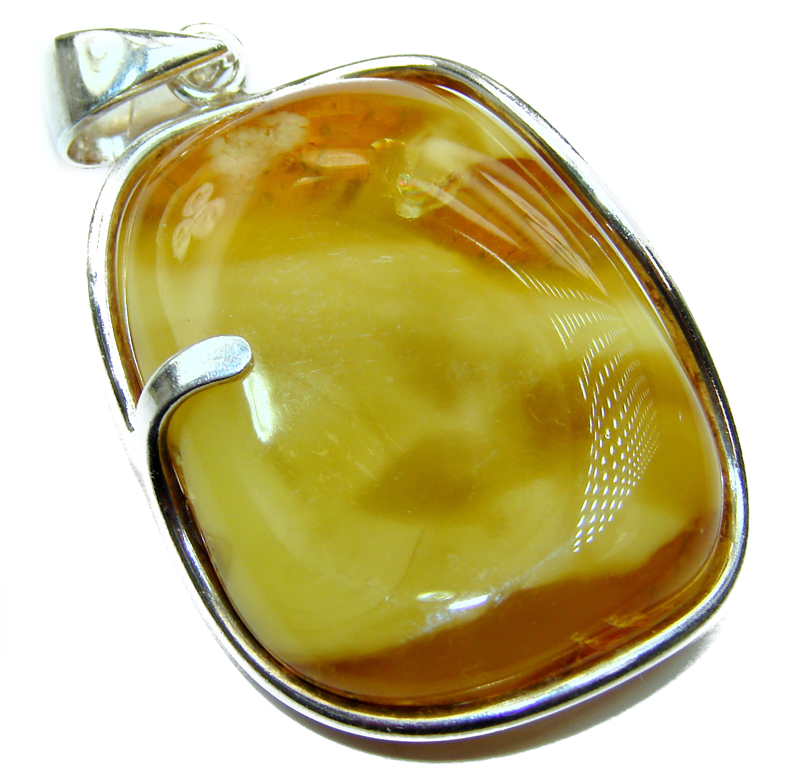 Huge Natural Baltic Amber .925 Sterling Silver handmade Pendant