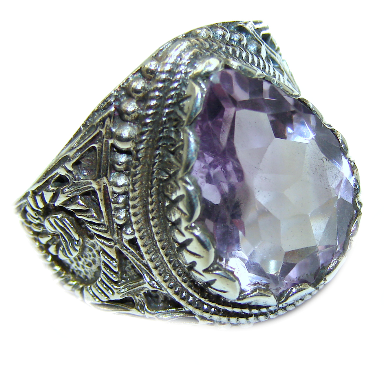 Spectacular genuine Pink Amethyst .925 Sterling Silver handcrafted Ring size 8