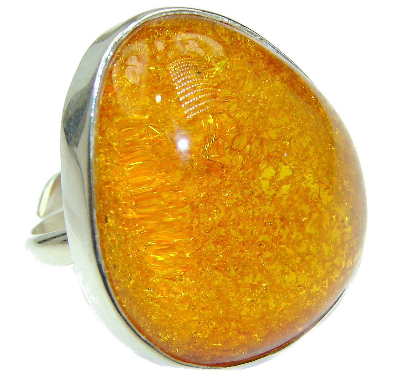 HUGE authentic Baltic Amber .925 Sterling Silver handcrafted ring; s. 7 adjustable